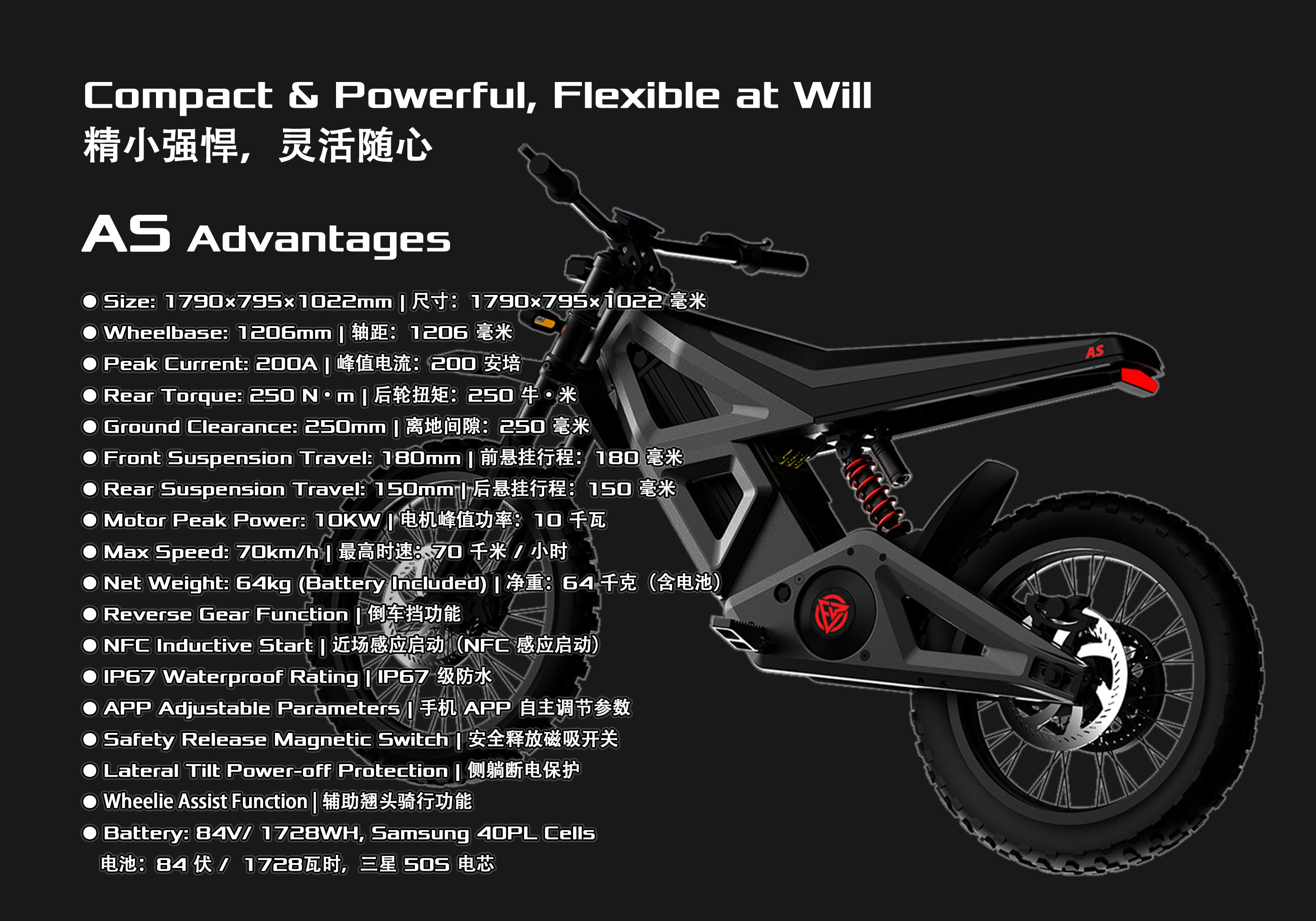● Max Speed: 70km/h | 最高时速:70 千米 / 小时